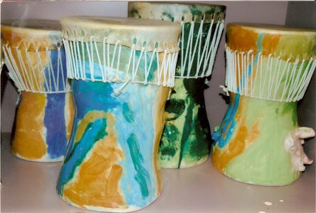 In this class students will learn how to make their very own ceramic drum. The area of study will focus on percussion as it is expressed throughout the world. Techniques such as coiling, pinching, and slab decorating will be incorporated as well as painting and glazing. New music will be introduced on a weekly basis. This class is DRUM TIGHT! Drum skin included.
